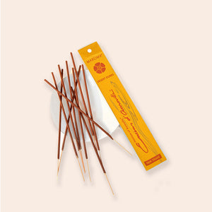 Natural essential oils of Mandarin, Patchouli, Rosemary & resins. Bamboo stick, wood powders, Macchilus Macaranth (Tree Bark Powder, a natural binder).