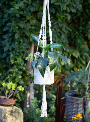 Expertly handcrafted from premium natural cotton cord, this elegant macrame plant hanger showcases traditional knotting techniques.