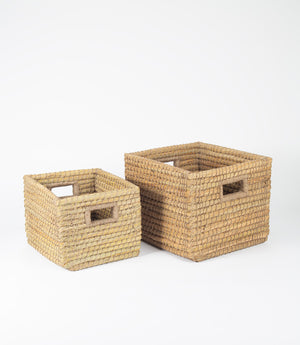 Each features integrated handles for easy carrying and a firm, structured form ideal for shelving, storage or display. Crafted by Fair Trade artisans in Bangladesh using traditional weaving techniques.