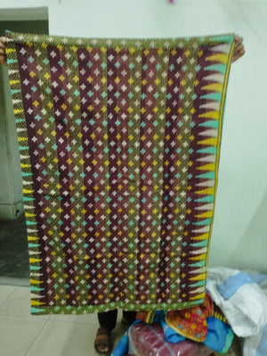 Women makers then quilt the layers together using the centuries-old kantha running-stitch—the tiny rows you see dancing across the cloth—creating a light yet cosy coverlet that softens with every wash.