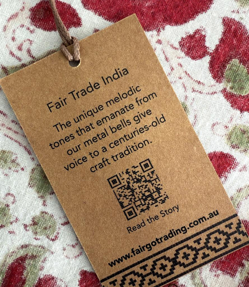 There is a huge difference in sound quality of machine-made and hand-made bells. Ours are expertly handcrafted in the Kutch district of Gujarat State in the North East of India bordering Pakistan.